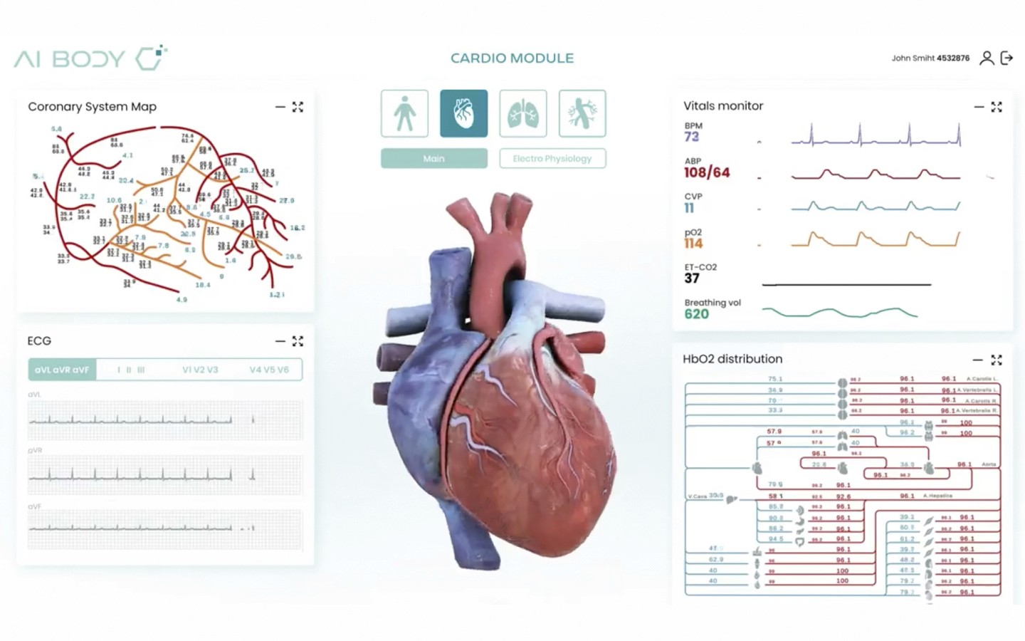 Medical education, historically reliant on real-time observations, often grapples with the limitations of existing technologies to create realistic real-life scenario simulations with sufficient diversity and complexity. AIBODY solves this issue for medical trainees and professionals by enabling the use of its true-to-life digital physiology in on-screen and XR
