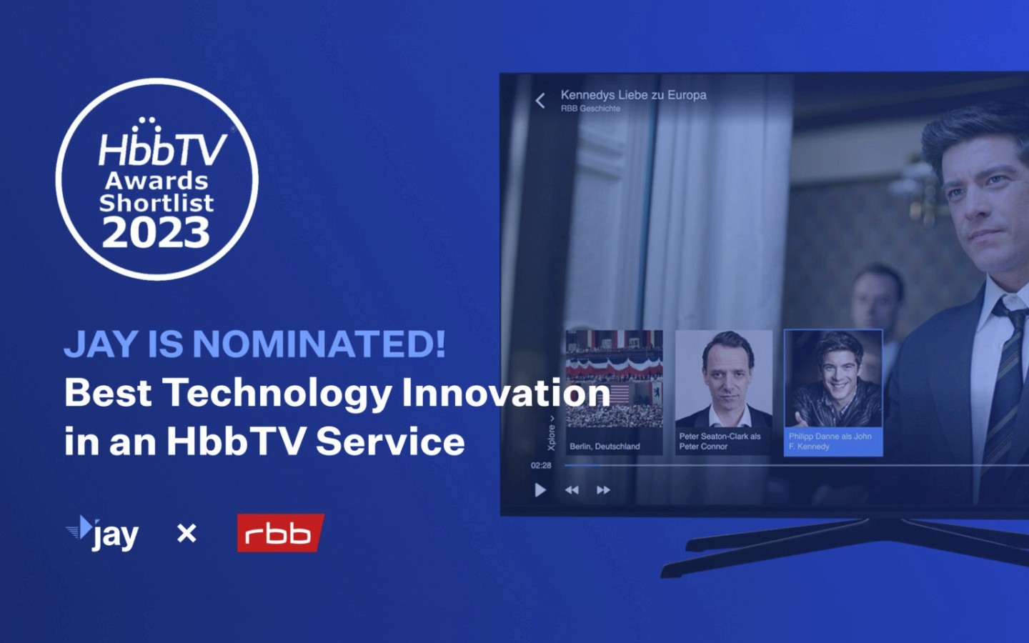 Jay's nomination for the HbbTVAwards 2023 in "Best technology innovation in an HbbTV product or service" reflects its pivotal role in advancing digital media. This acknowledgment highlights Jay's alignment with the industry's push towards more interactive and engaging content. It's a clear recognition of Jay’s groundbreaking approach to television viewing experiences.